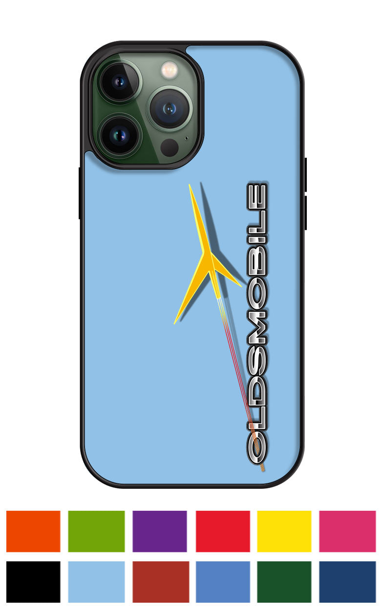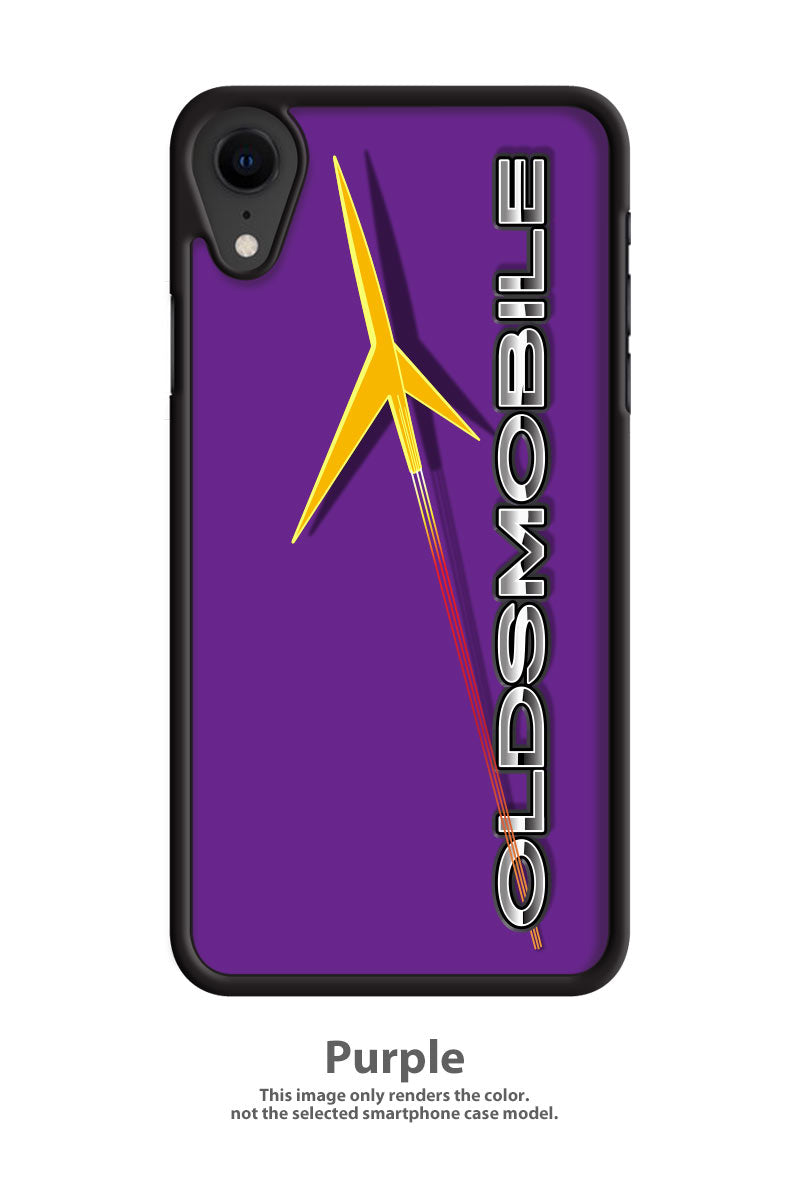 Perfect for all car enthusiasts, this smartphone case shows the magnificent 1957 - 1960 Oldsmobile Rocket Emblem on a colorful background with racing stripes.