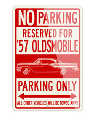 The harmonious, accurate, and elegant illustration of the 1957 Oldsmobile 98 Starfire Convertible is printed on an aluminum insert featuring a colorful color background with racing stripes.