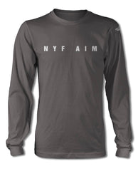 The coded sentence is illustrated as it was on the meatball of the Cobras. Placed on the front of the T-Shirt, this code will bring curiosity and long conversation about the war that happened between the two Legends of automobile racing. If anyone knows why there is extra space between “NYF” and “AIM”, please contact us and tell us the story behind. NYF AIM Short Sleeve T-Shirt.